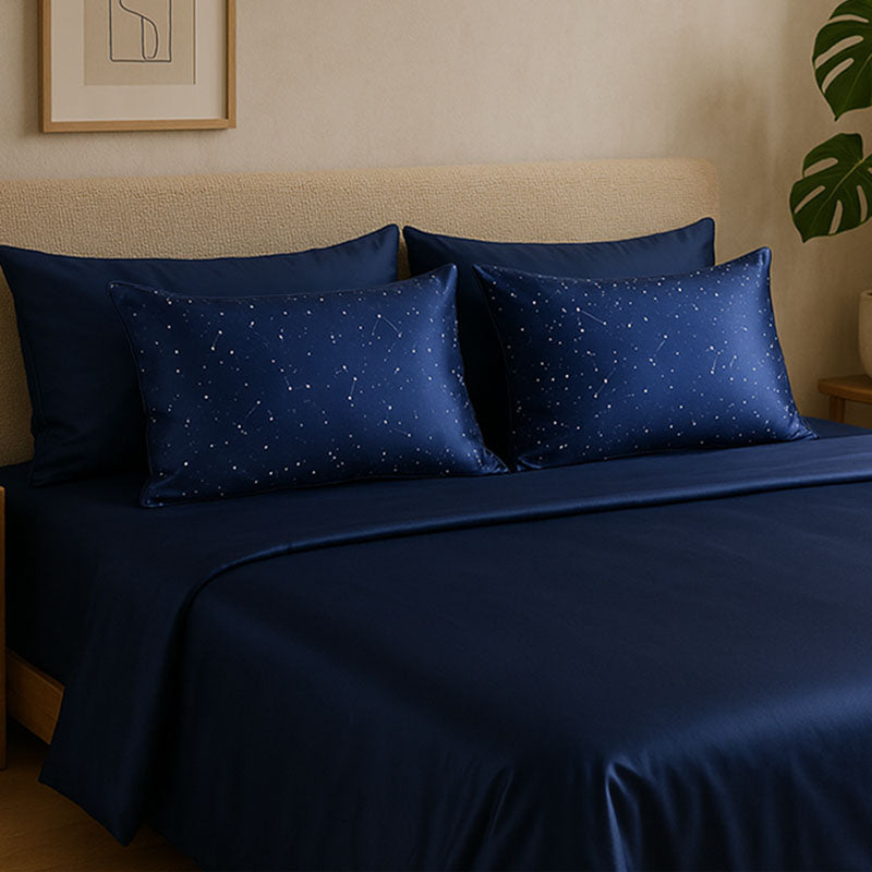 Let yourself be lulled by the magic of the heavens with our Constellation-print silk pillowcase, created for dreamers and comfort lovers. Wake up every morning with soft skin, healthy hair and a rested mind, ready to touch the stars and even reach for the moon.