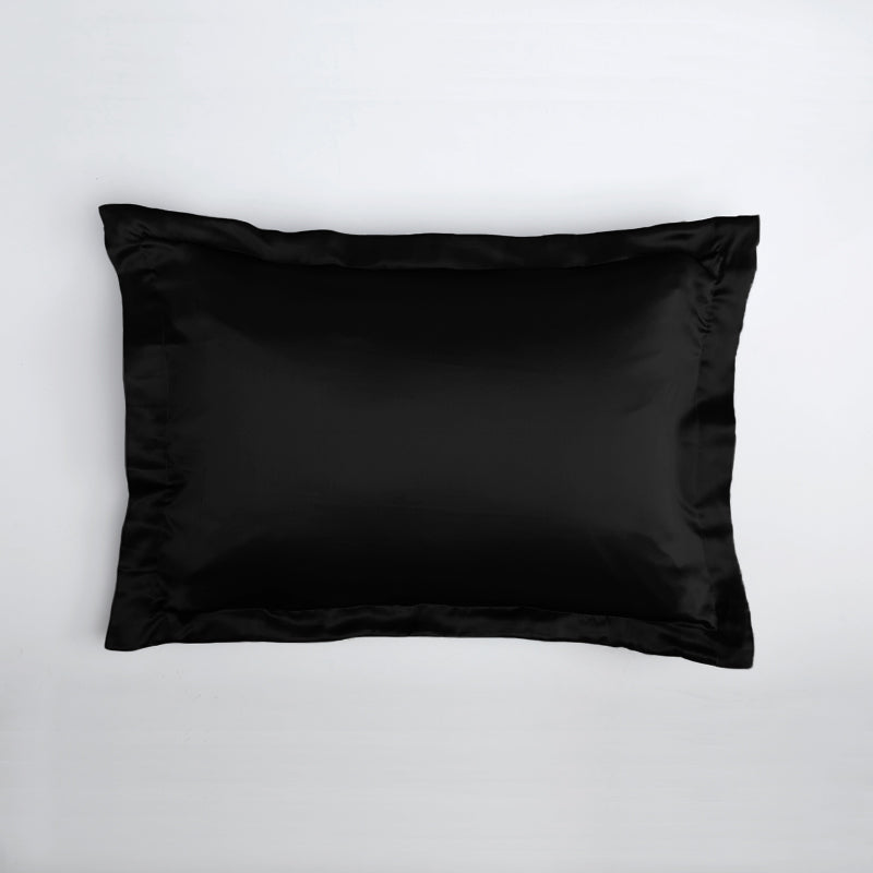 Taie d'oreiller en soie avec volant 19 mommes Noir / 50x75 cm déclassé - MS378