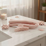 Découvrez un rituel de coiffage tout en douceur avec notre kit de boucles sans chaleur en soie, pensé pour sublimer la chevelure sans jamais l’agresser. Confectionné en soie naturelle d’une grande délicatesse, il accompagne vos nuits comme vos moments de détente pour créer des ondulations harmonieuses, souples et lumineuses. Son ruban soyeux et ses accessoires de maintien enveloppent les longueurs sans friction, préservant la fibre capillaire et la brillance naturelle des cheveux.