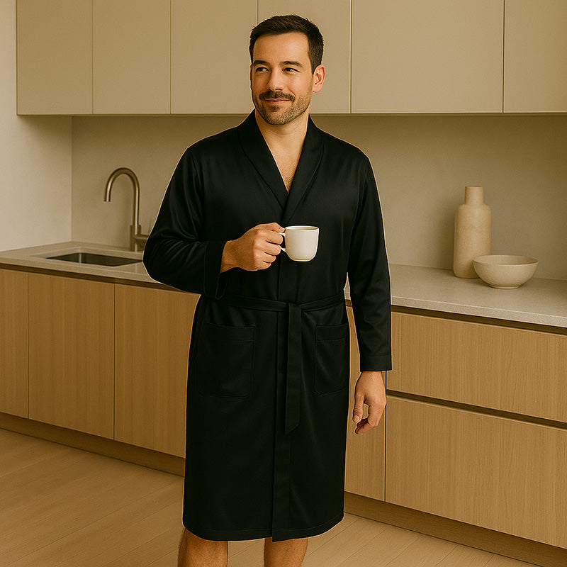 Enveloppez-vous de douceur avec notre peignoir long en soie pour homme, idéal pour prolonger le confort du lit jusque dans vos routines du matin ou vos instants de détente du soir. Doté de deux poches pratiques et d’une ceinture ton sur ton, il conjugue fluidité, brillance discrète et finitions soignées. Porté à même la peau, il procure une sensation inégalée : celle d’un luxe feutré, simple, et profondément apaisant.