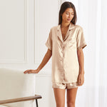 Craquez pour la délicatesse et le raffinement de ce pyjama court en soie de la Collection Elégance.