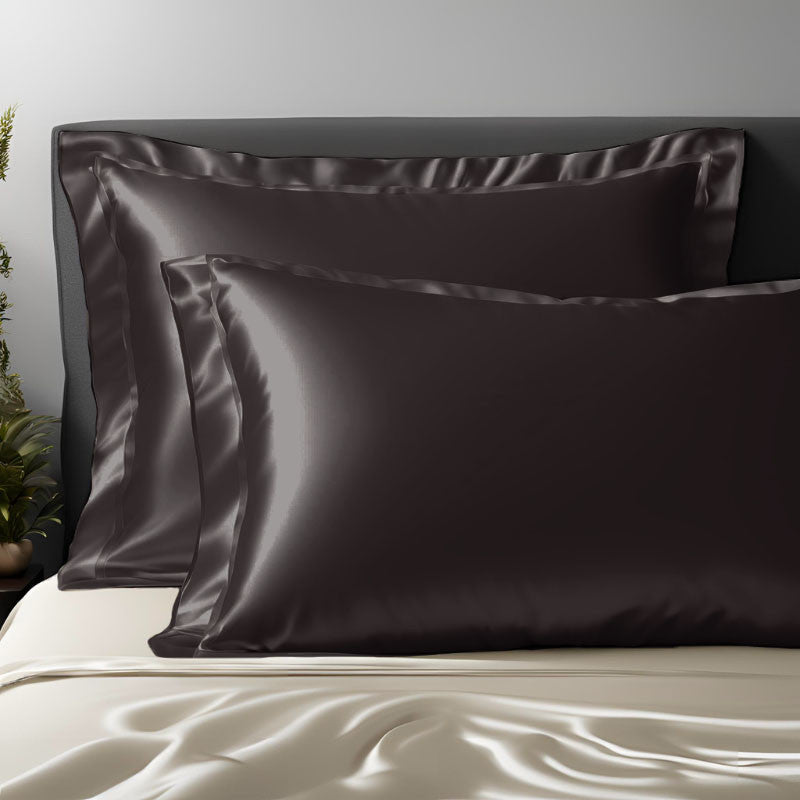 Taie d'oreiller en soie avec volant 25 mommes Gris anthracite / 50x75 déclassé - MS749